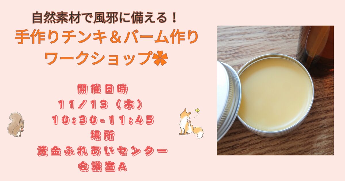 風邪に備える『手作りチンキ&バーム作りワークショップ』では、