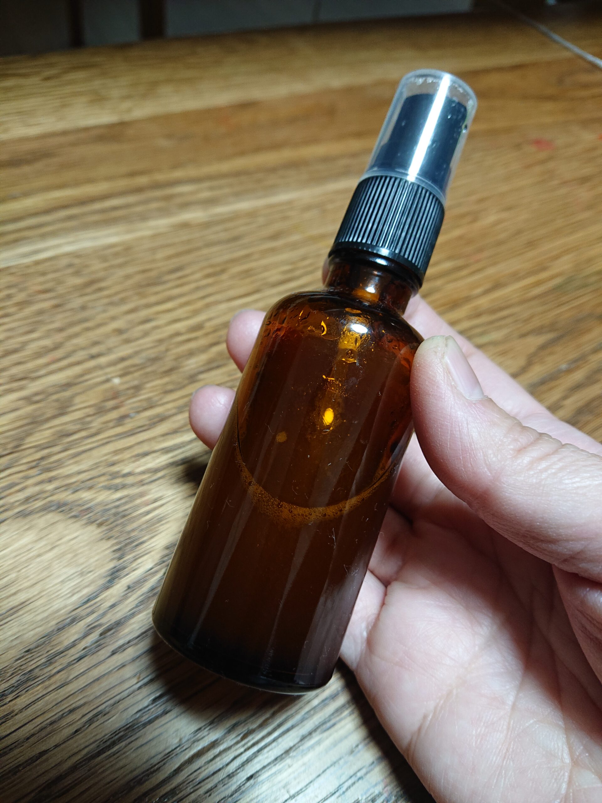 そんなレモングラスチンキに精製水又は水道水を入れるだけでも十分に香りがあり、ルームスプレーになるのですが、今回は風邪予防もしたいので、それに適している精油「ユーカリラディアータ」も数滴入れました。