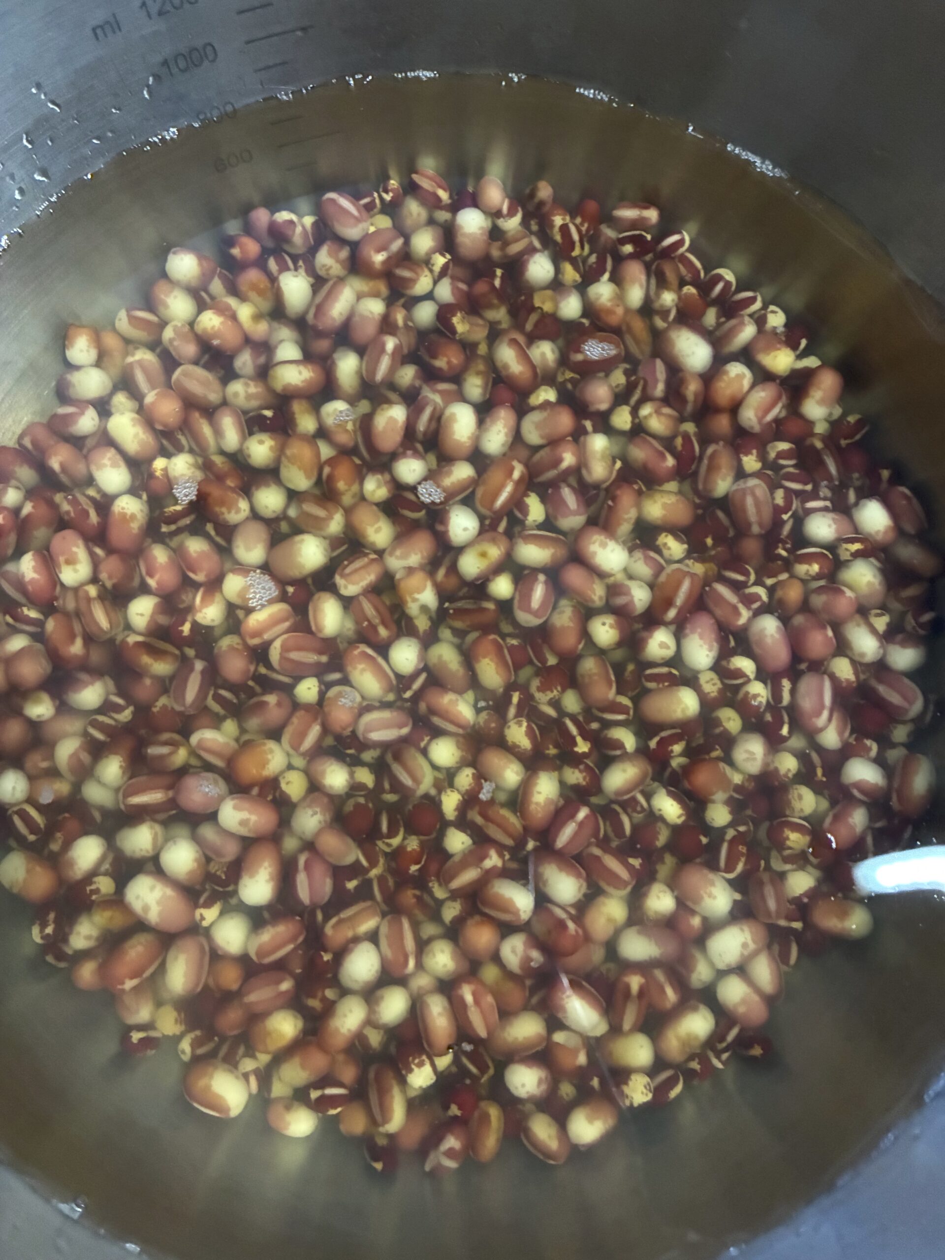 煮ると花嫁あずきのあのカラフルな色はなくなっていつものあんこの色になりました笑