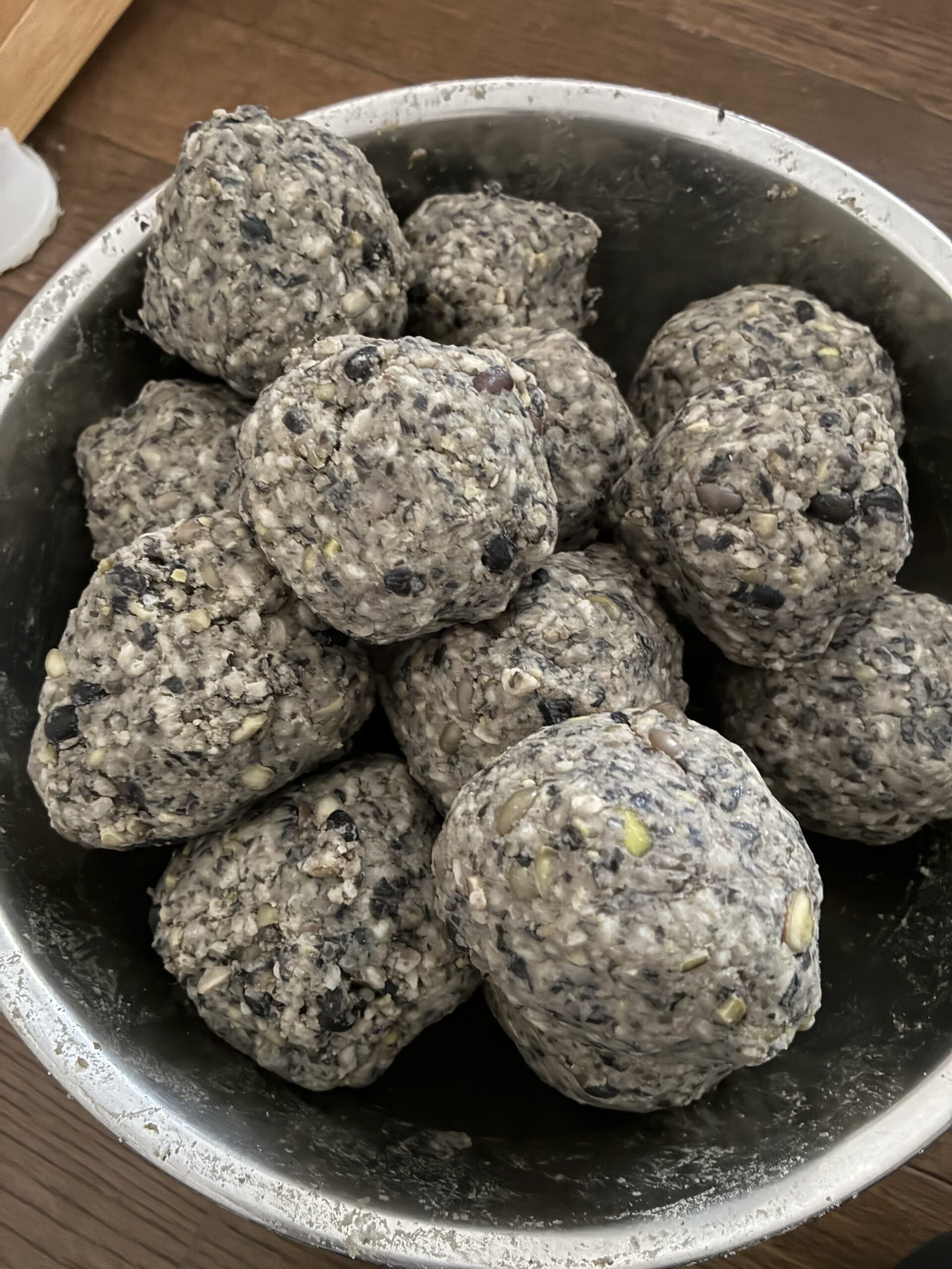 5️⃣ 3️⃣と4️⃣を混ぜて、団子を作る