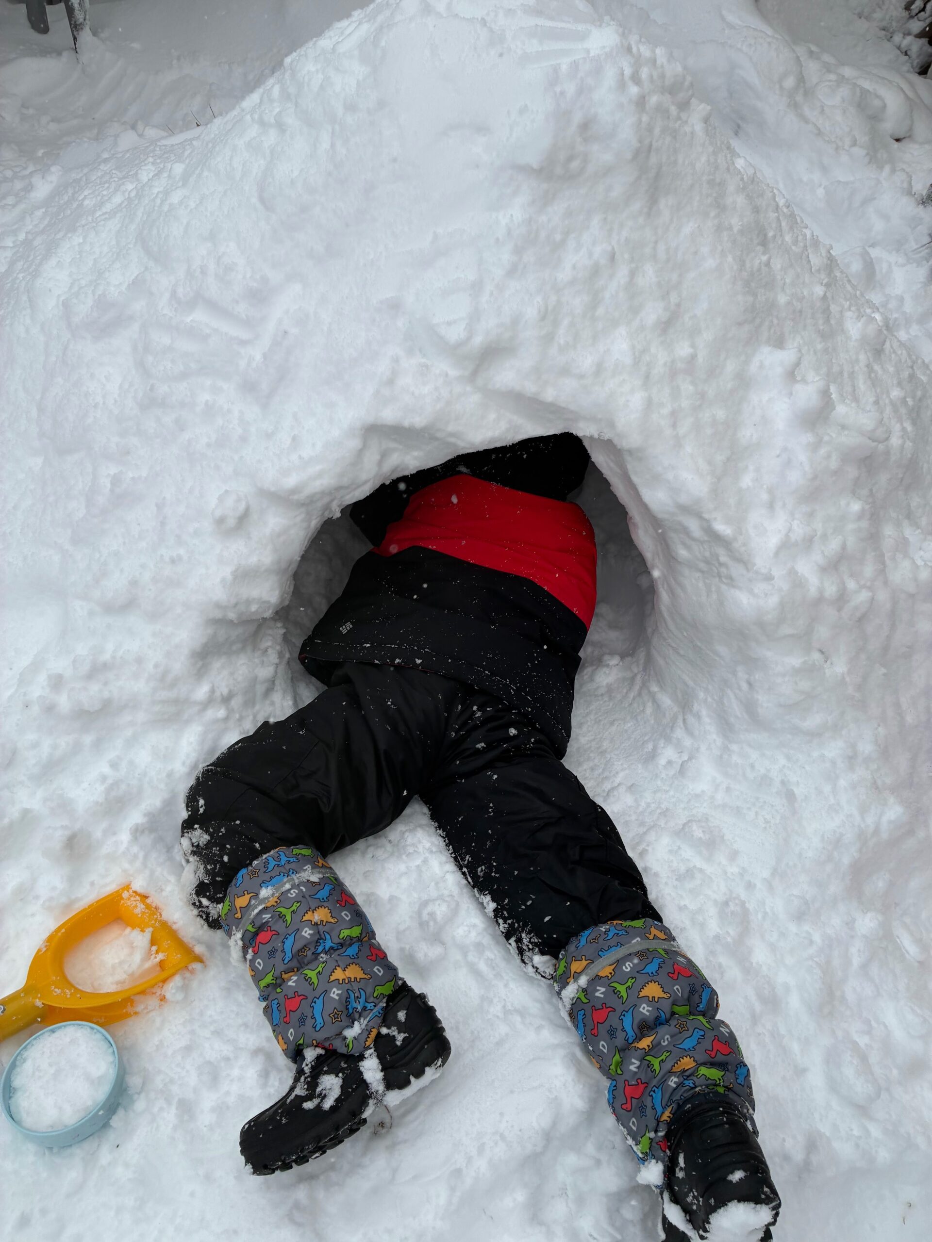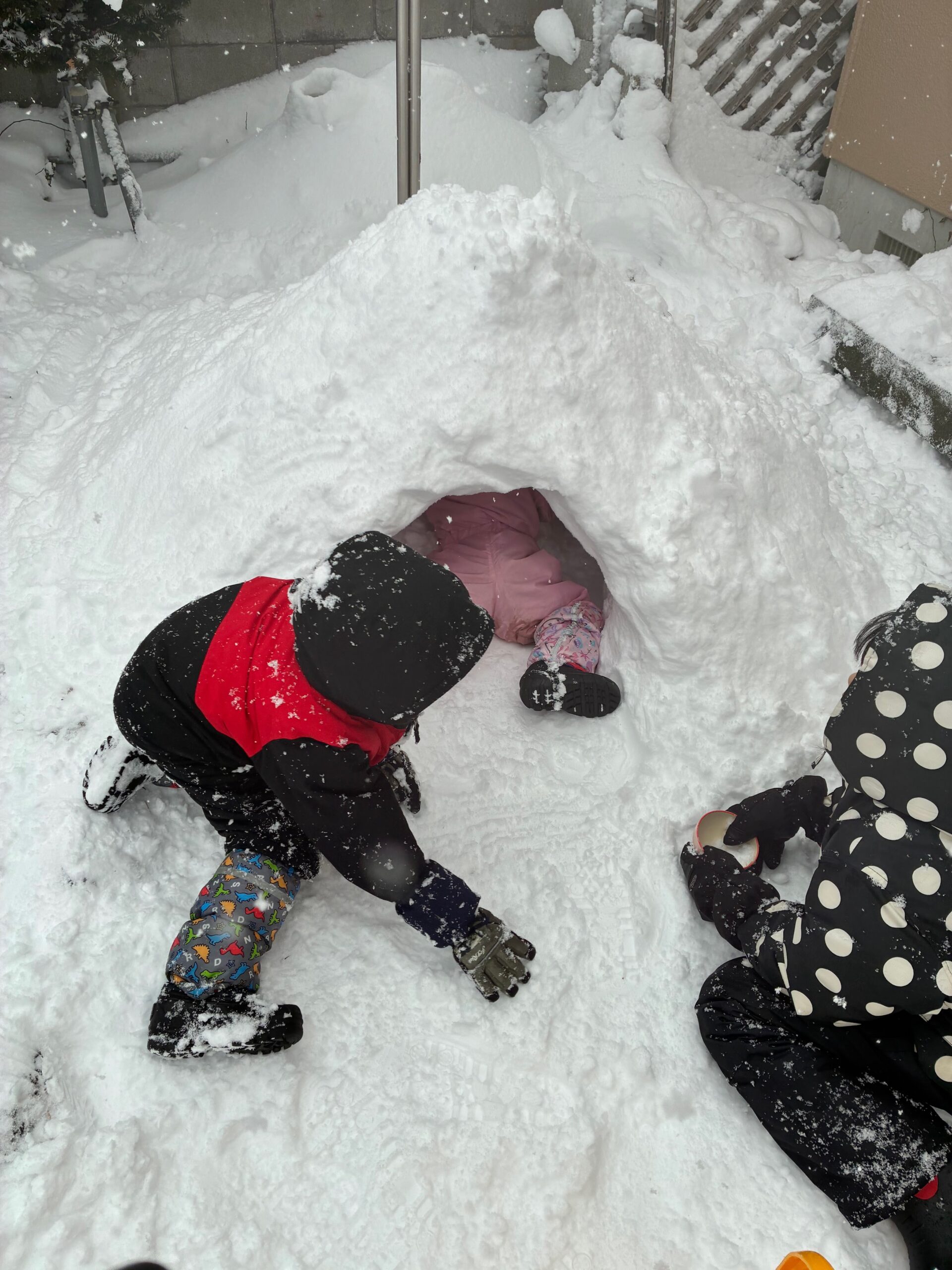 子どもたちと雪遊びをする中で、今回は“かまくら作り”にチャレンジしました。