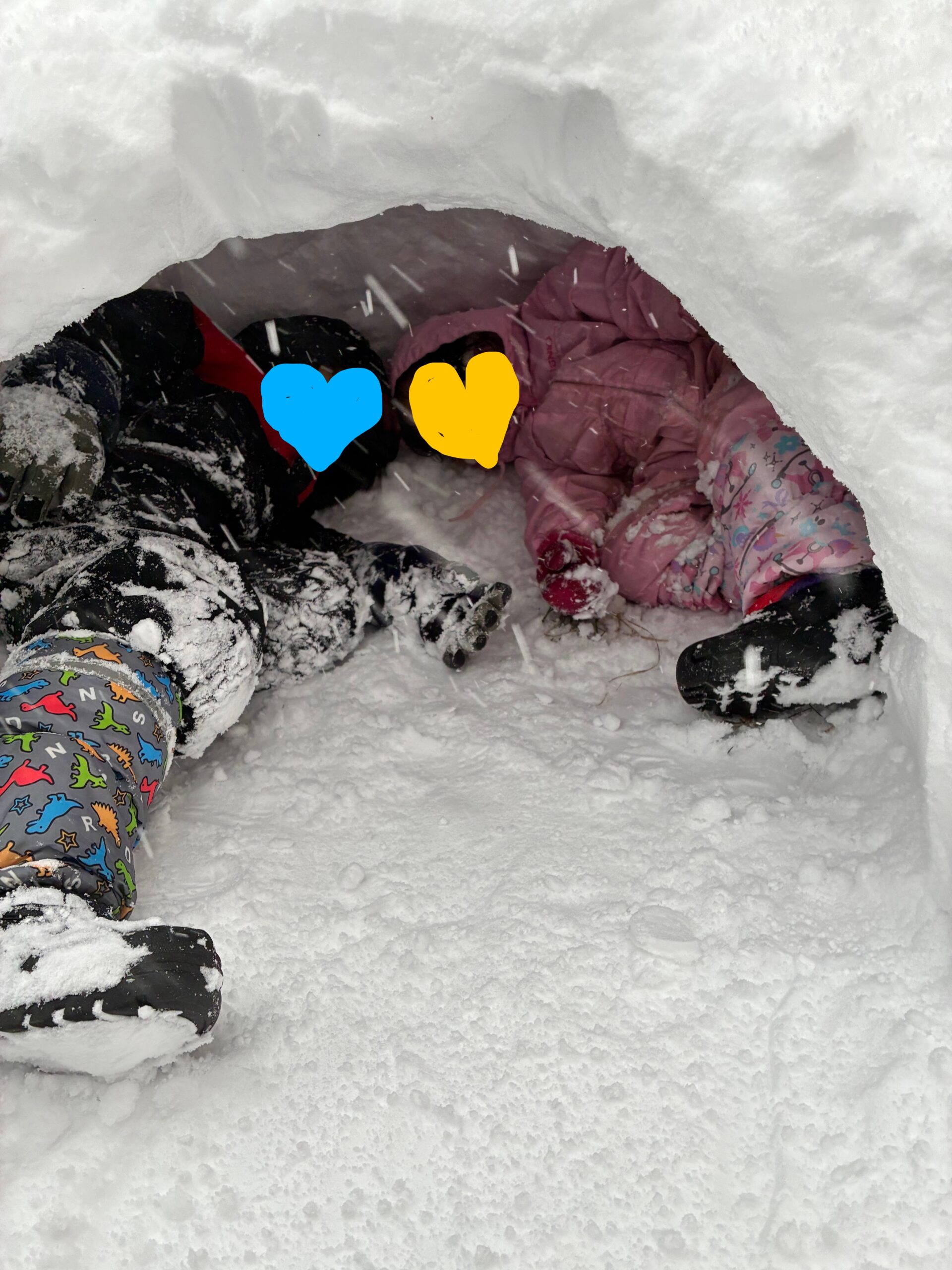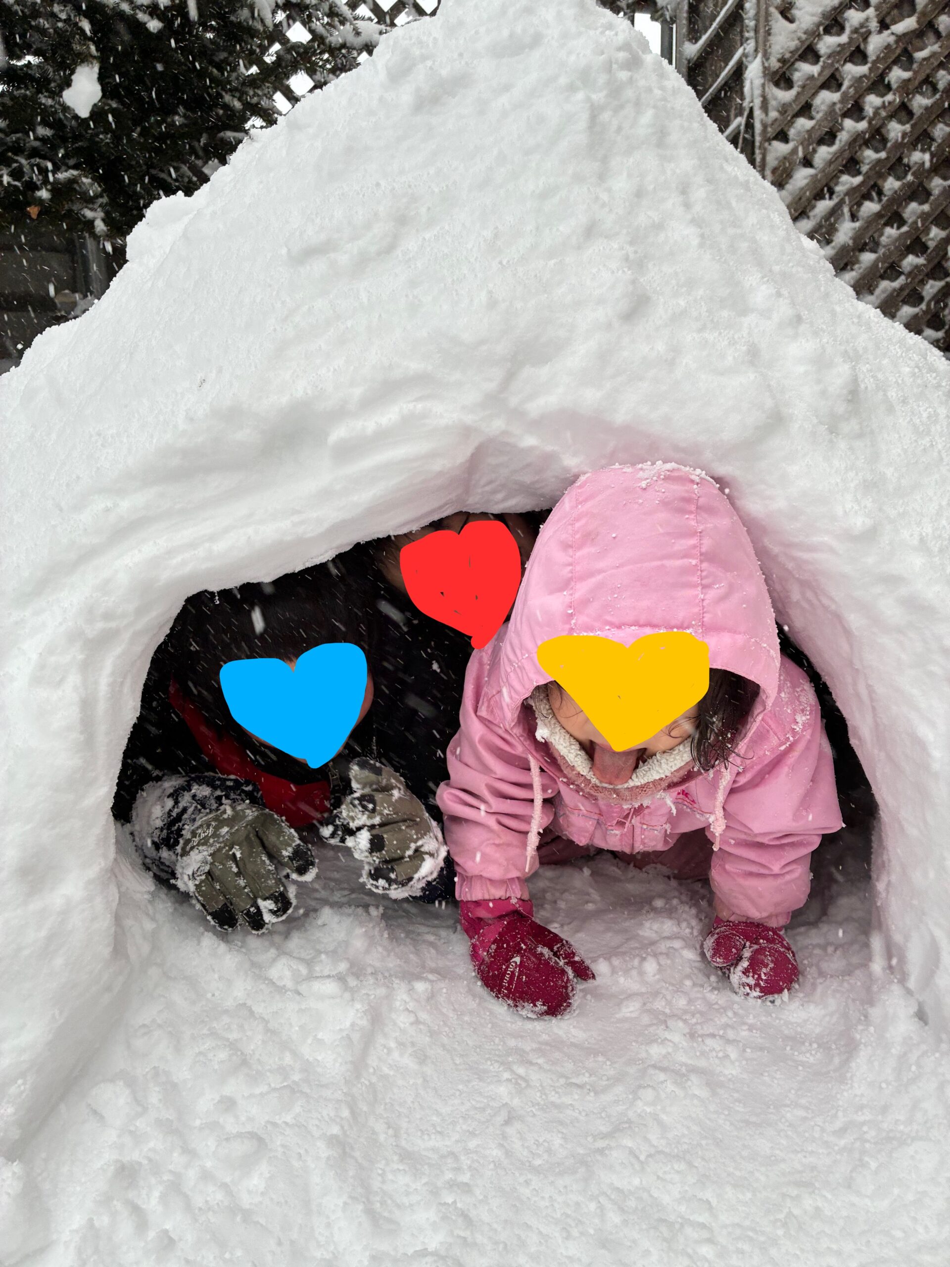 完成した時には吹雪いて前が見づらくなってしまったため余韻を楽しむ時間はそれほど取れず、、、。それでも完成したかまくらに大満足の子どもたちでした。