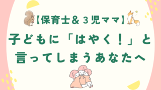 子育て情報 【保育士&3児ママ】子どもに「はやく!」と言ってしまうあなたへ 今回は、子どもに対して言ってしまう言葉ベスト3位以内に入るであろう「早く」について。保育士であり、子ども心理資格をもつ私が「早く」と言ってしまう心理と使いすぎない方がよい理由をお伝えします。自分を責める必要はありません。「早く」という言葉は... 2026.01.21 子育て情報